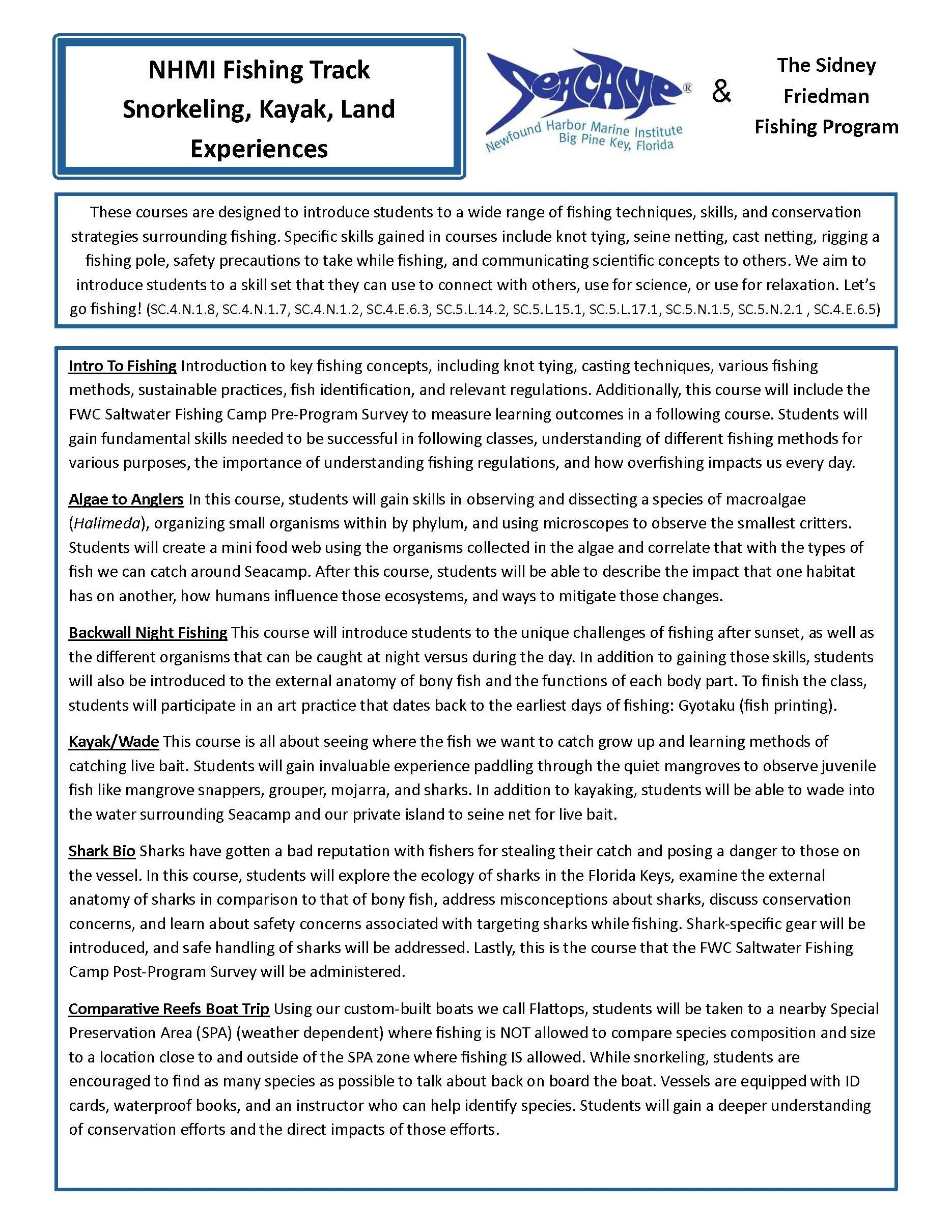 Seacamp’s mission is to create awareness of the complex, fragile marine world and foster critical thinking and informed decision making about the uses of natural resources, including how to fish responsibly. Residential programs funded by the Friedman Family Foundation are offered to schools and other organized groups throughout the year.